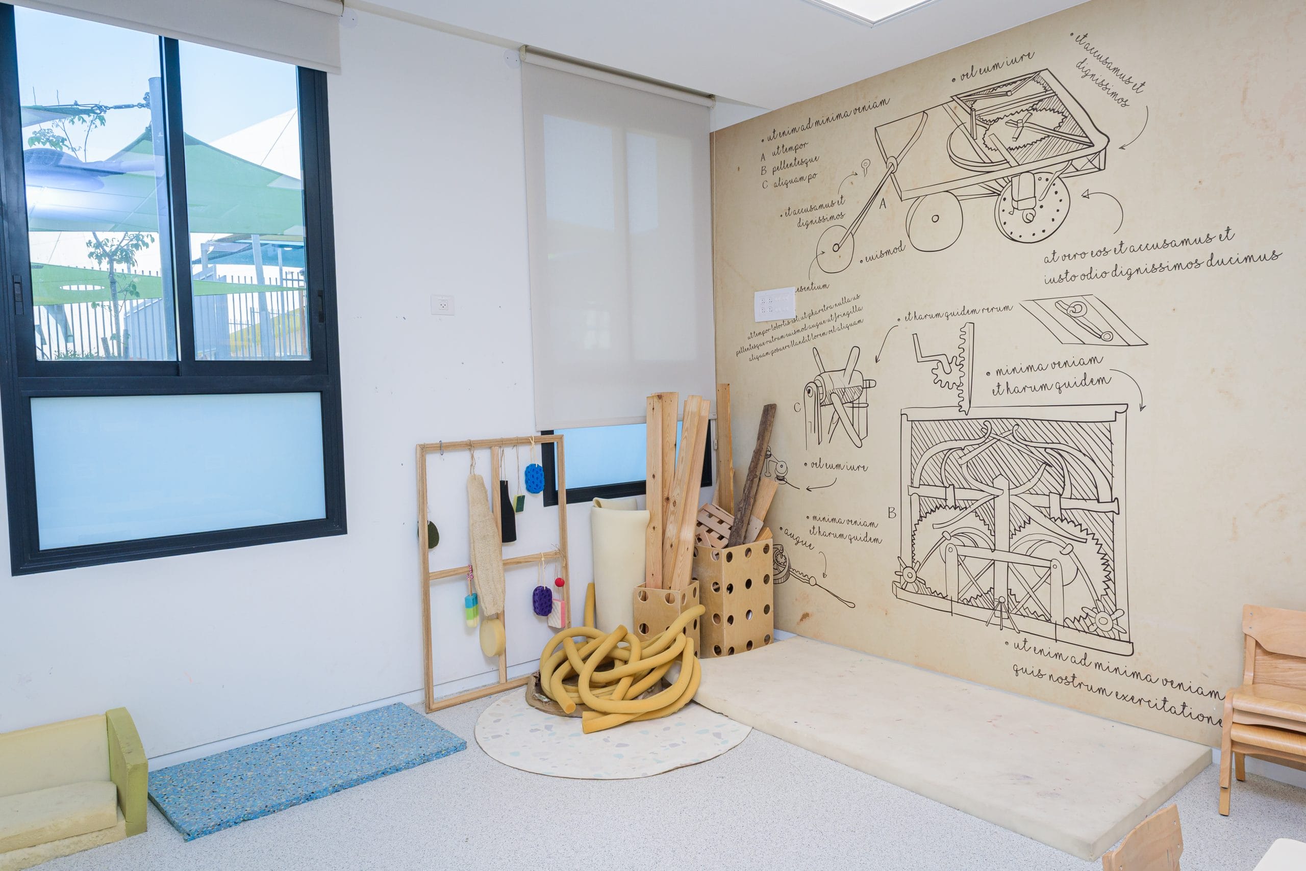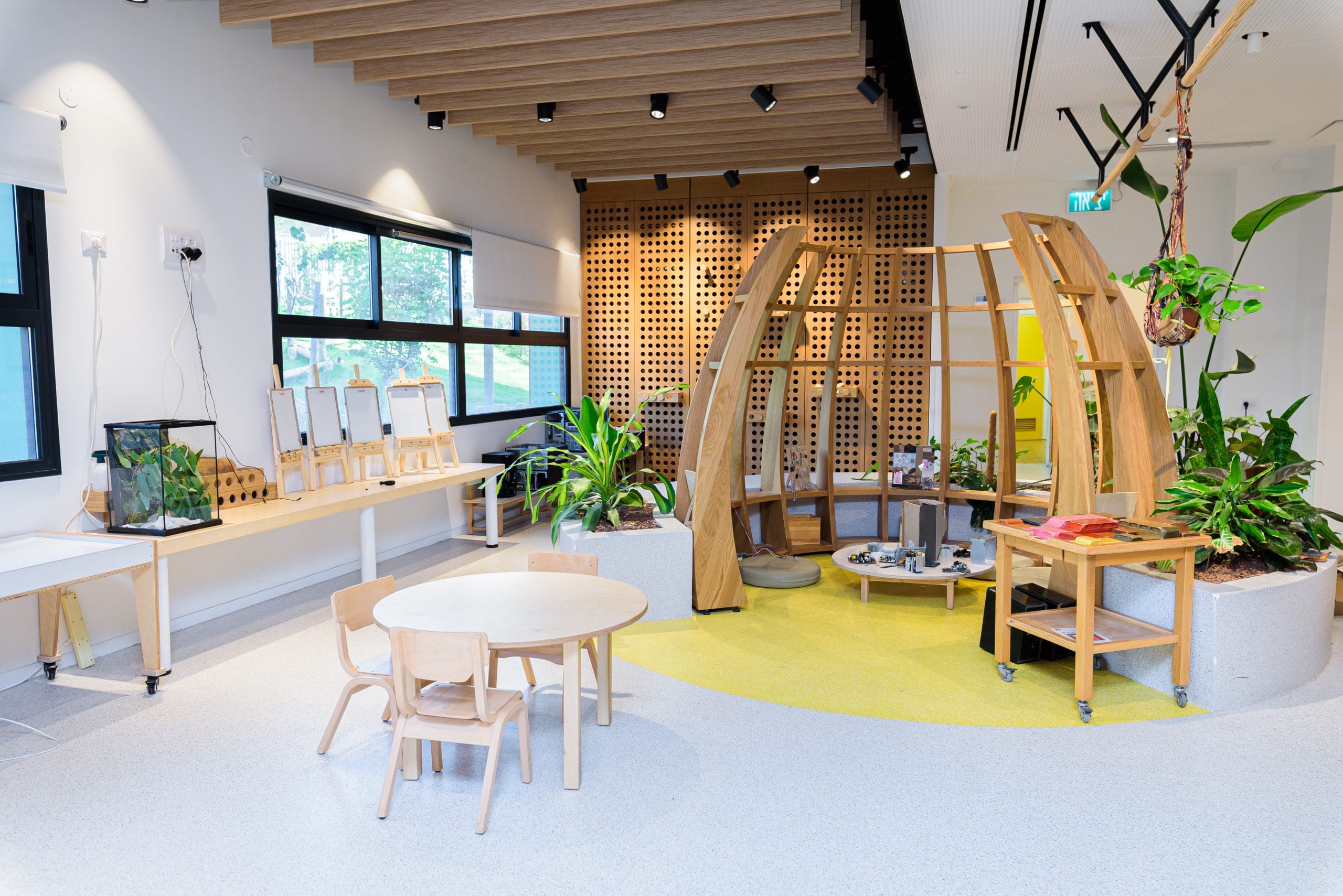 המרחב כולל: מטבח ניסויי, חדר אינטראקטיבי, סדנת חומרים, חדר חלל, סטודיו לתנועה וחצר טבעית.